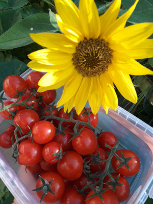 Tomaten, Paprika, milde Peperoni, Kräuter, Äpfel, Quitten und Birnen.